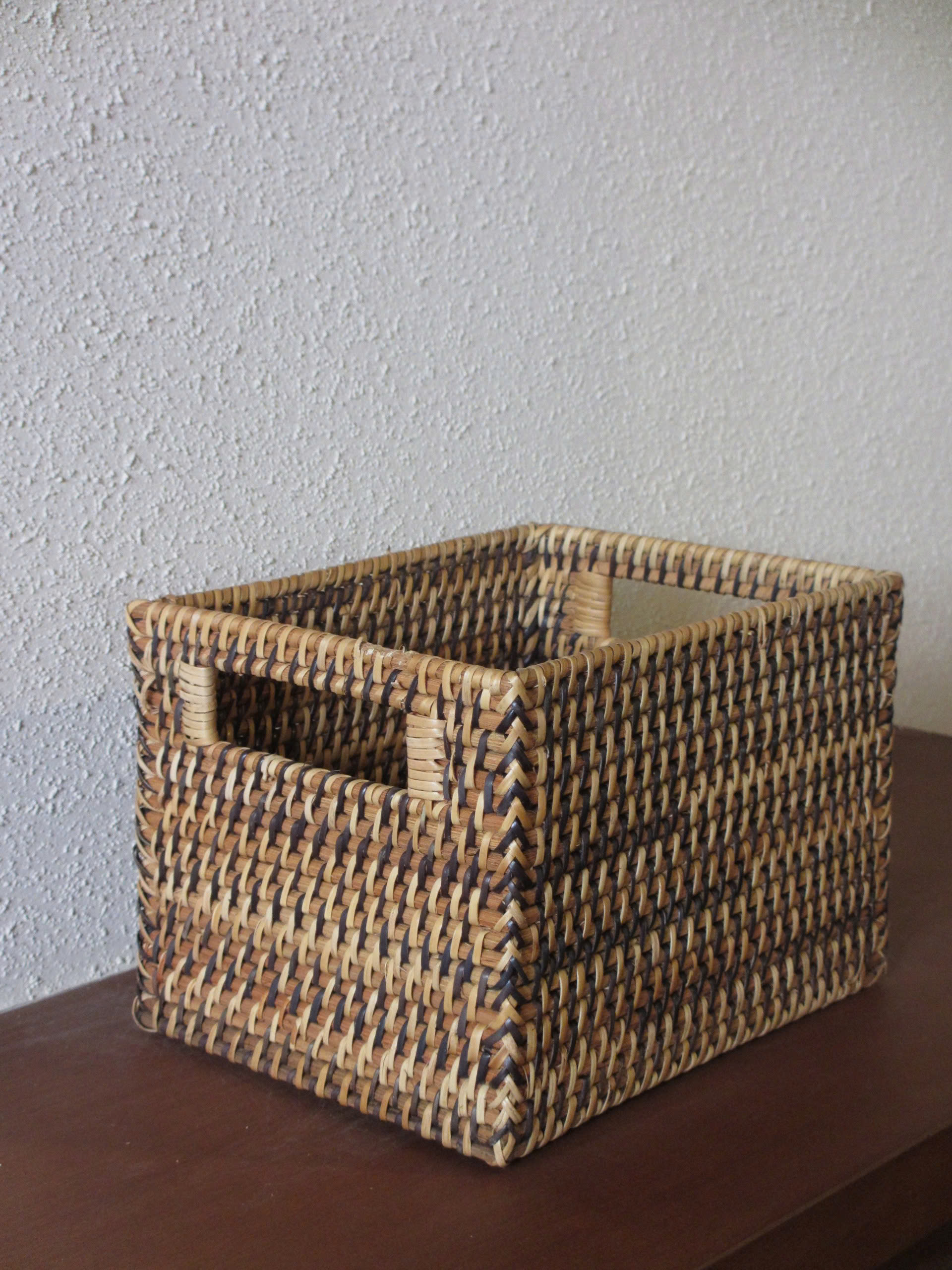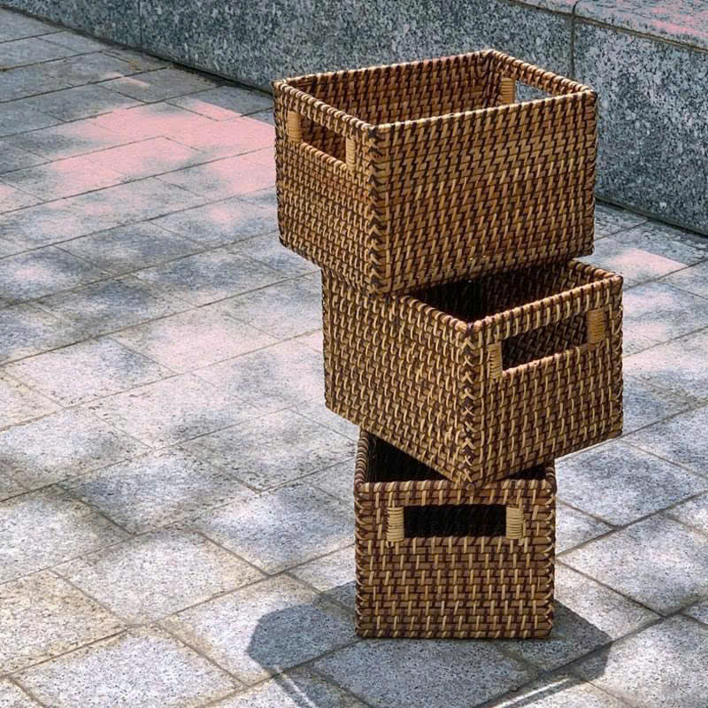 Chiếc khay mây xiên được đan tay tỉ mỉ từ sợi mây tự nhiên với hoa văn xiên độc đáo, mang đến cảm giác gần gũi, ấm áp cho không gian sống. Thiết kế hình hộp vuông vức, tay cầm khoét hai bên giúp dễ dàng di chuyển và sử dụng.