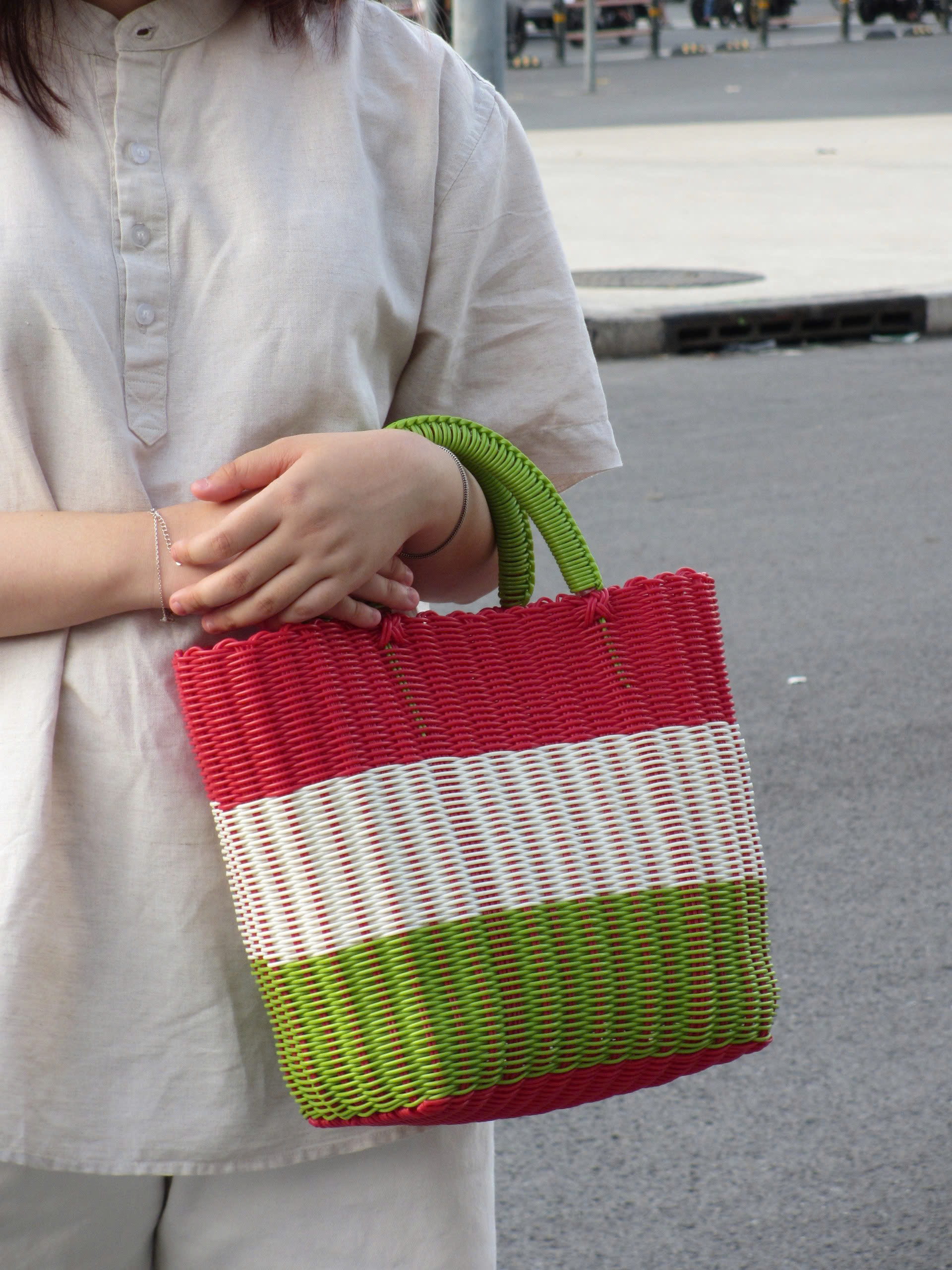 Kiểu dáng: Cứng cáp, đứng form tốt – phù hợp cả đi chợ, đi biển hay đựng đồ cá nhân